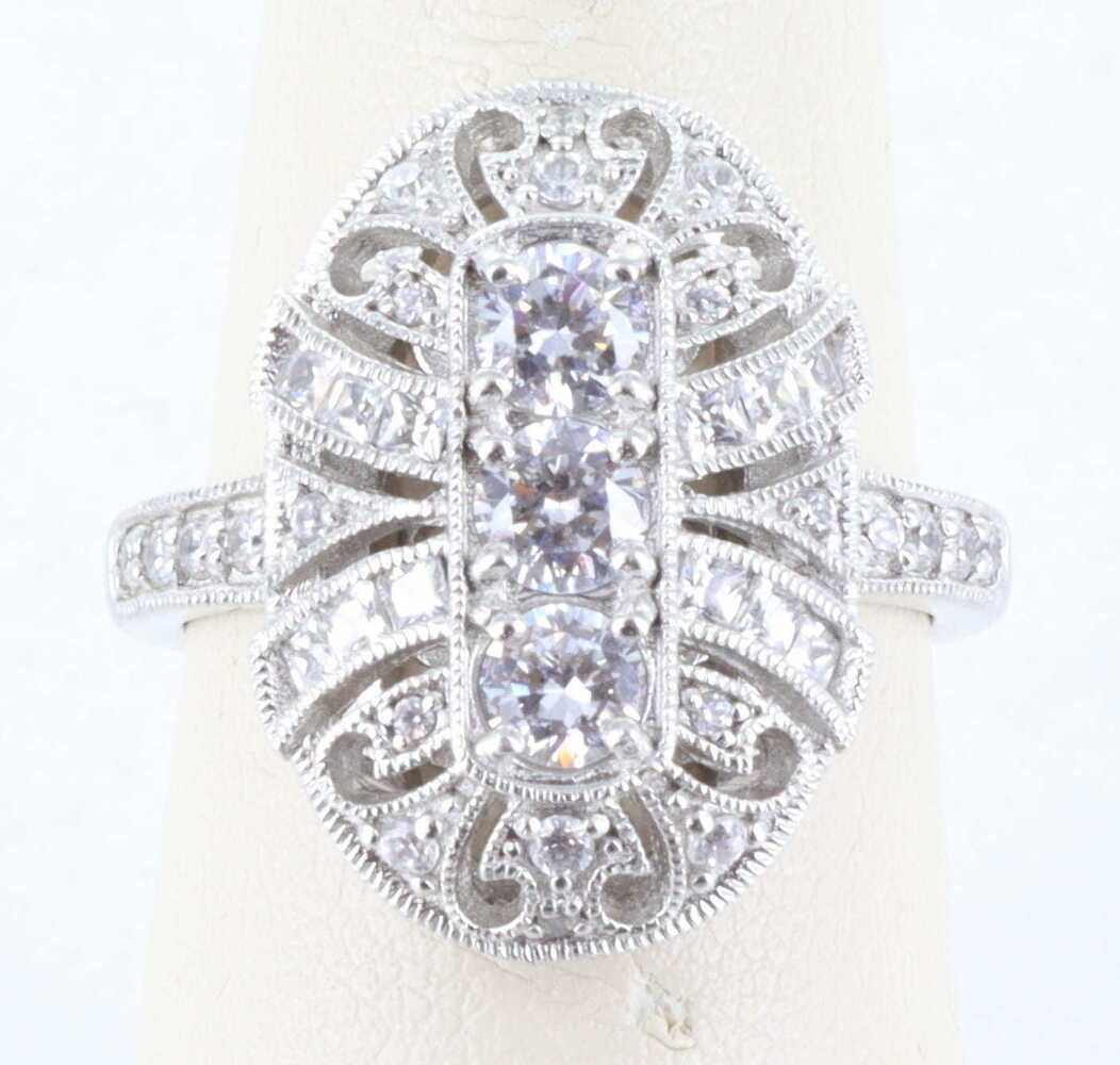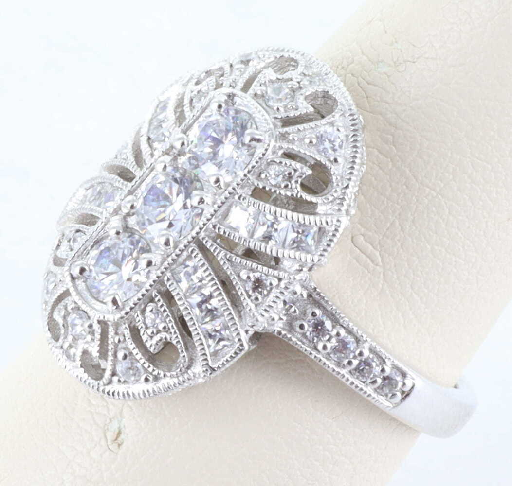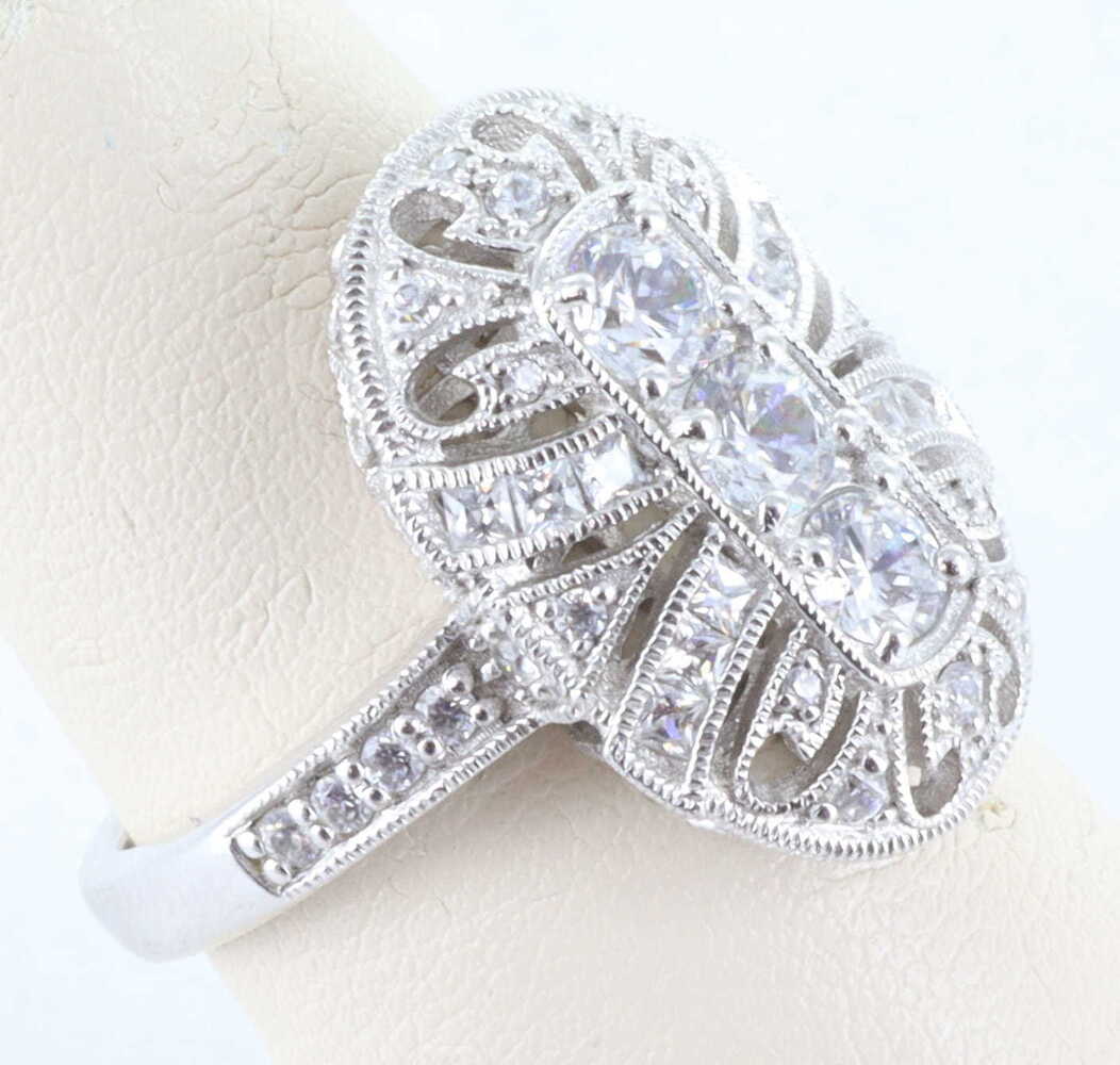 STERLING SILVER 925 CZ DIAMONIQUE ORNATE ART DECO RING, SIZE 8