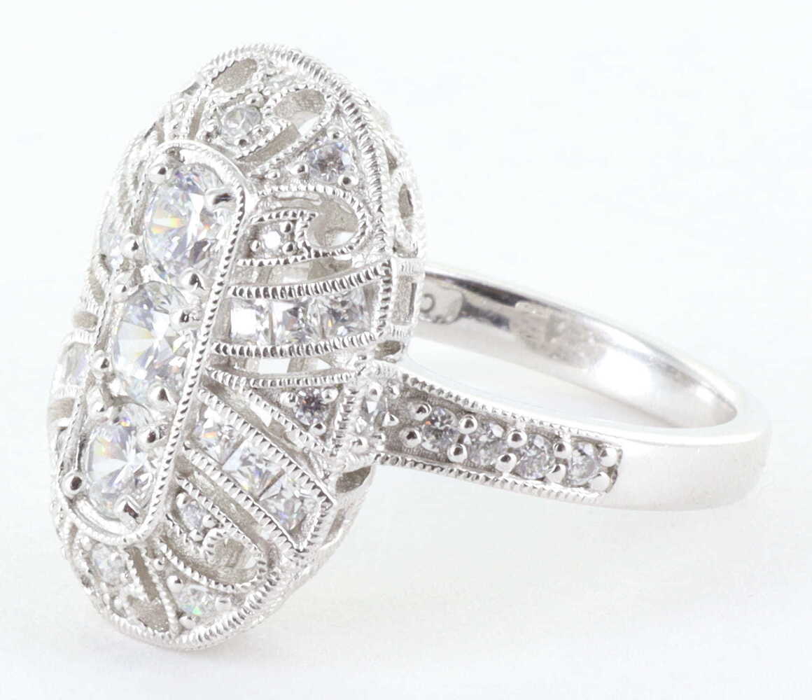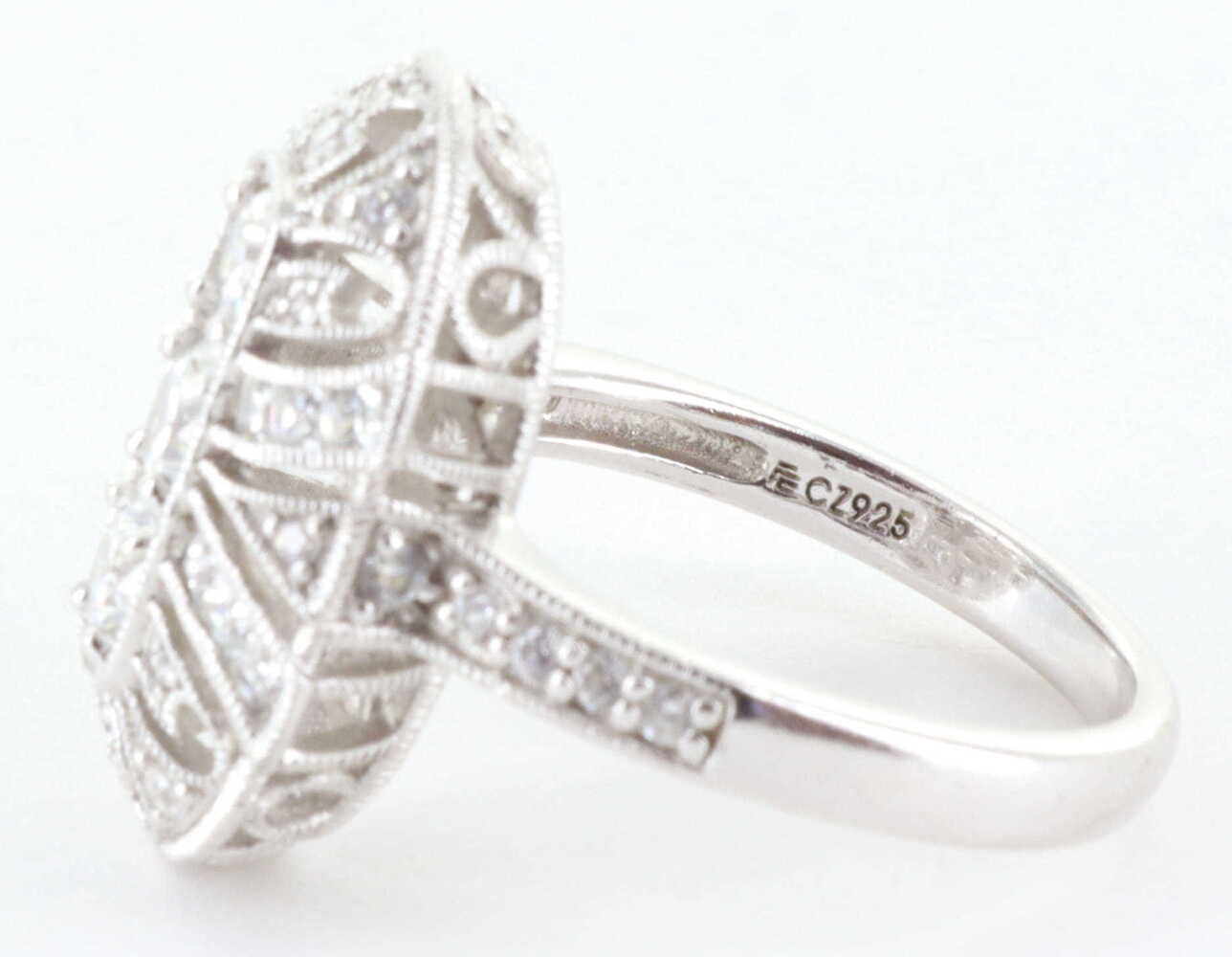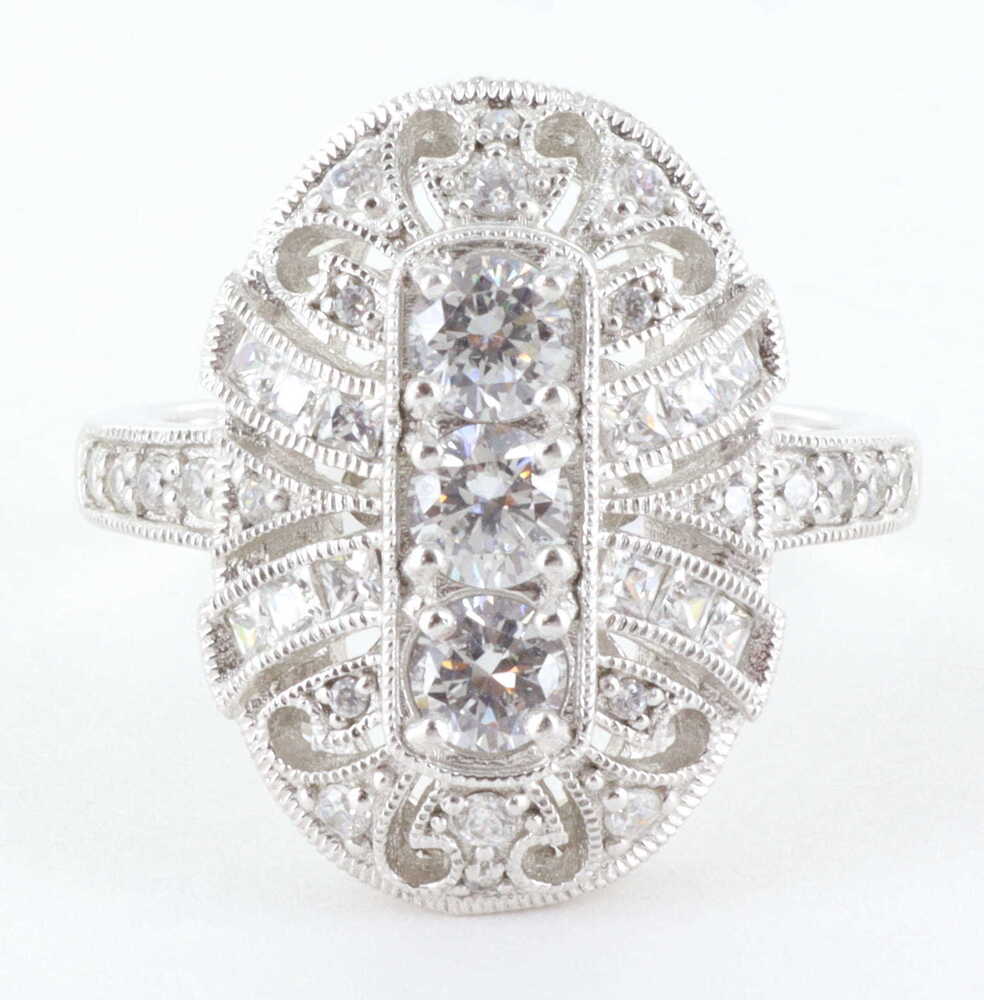 STERLING SILVER 925 CZ DIAMONIQUE ORNATE ART DECO RING, SIZE 8