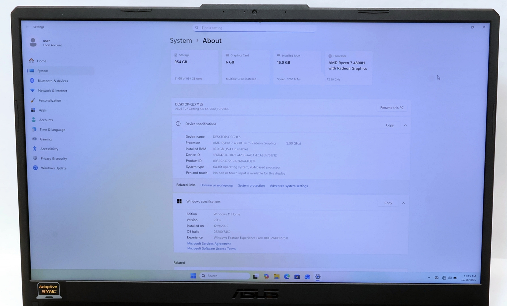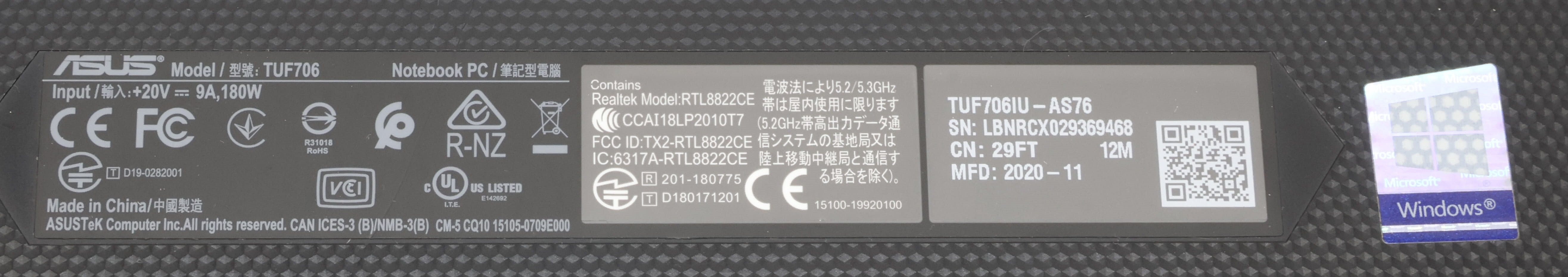 - Model: TUF A17 FA706IU