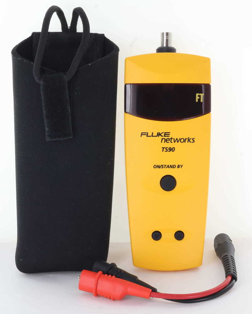 FLUKE NETWORKS TS90 CABLE FAULT FINDER W/ TEST LEADS (BNC TO ALLIGATOR CLIPS), CARRY POUCH