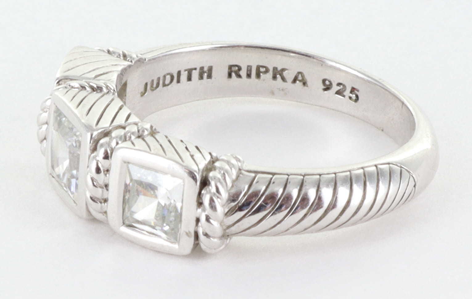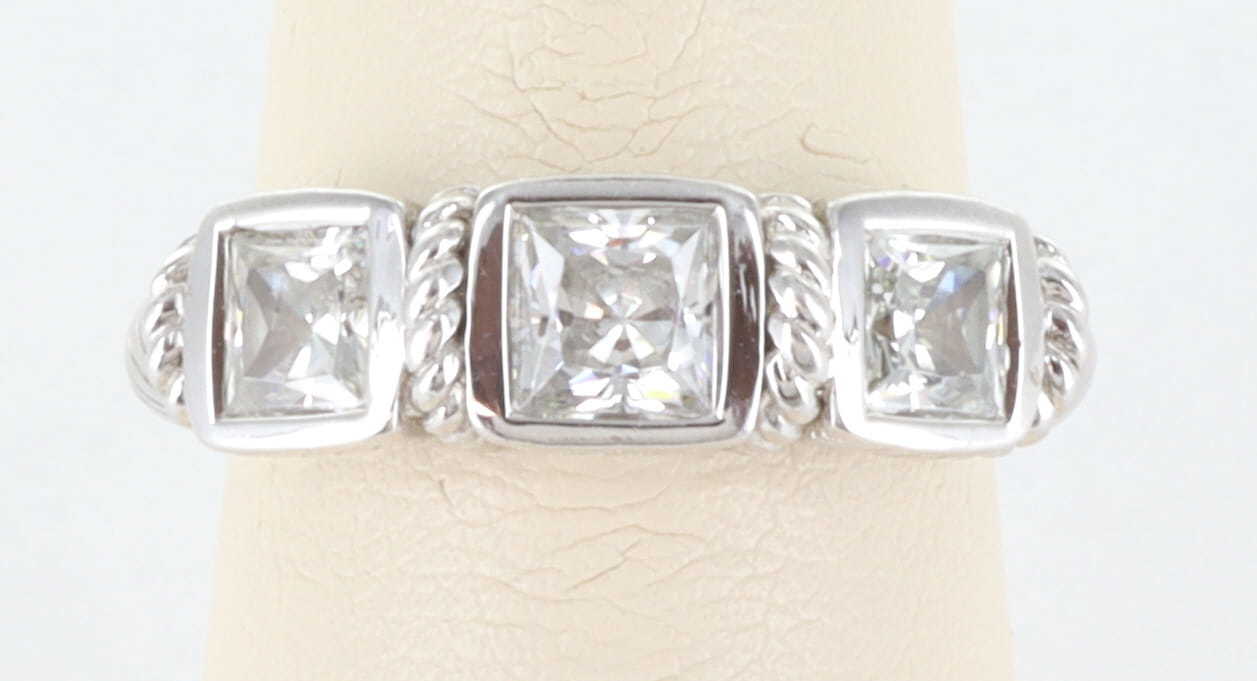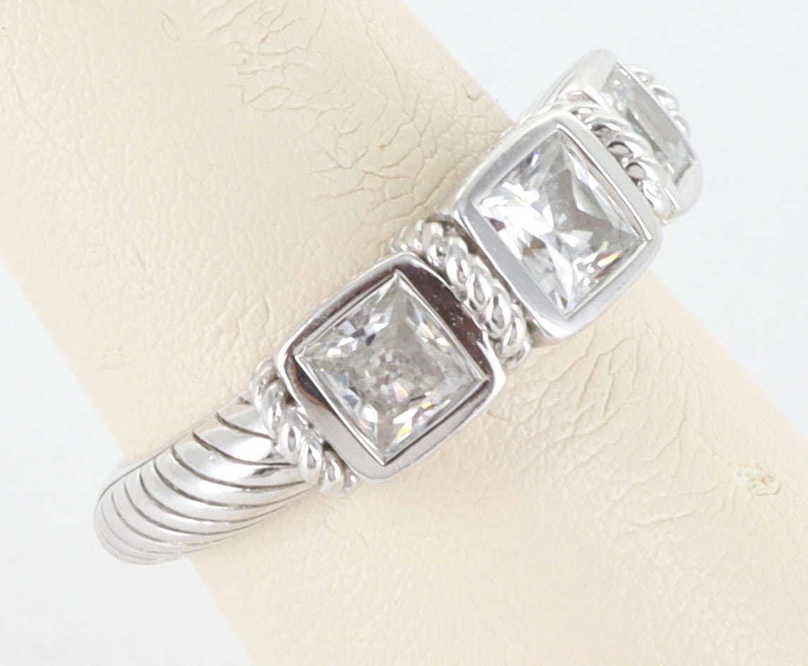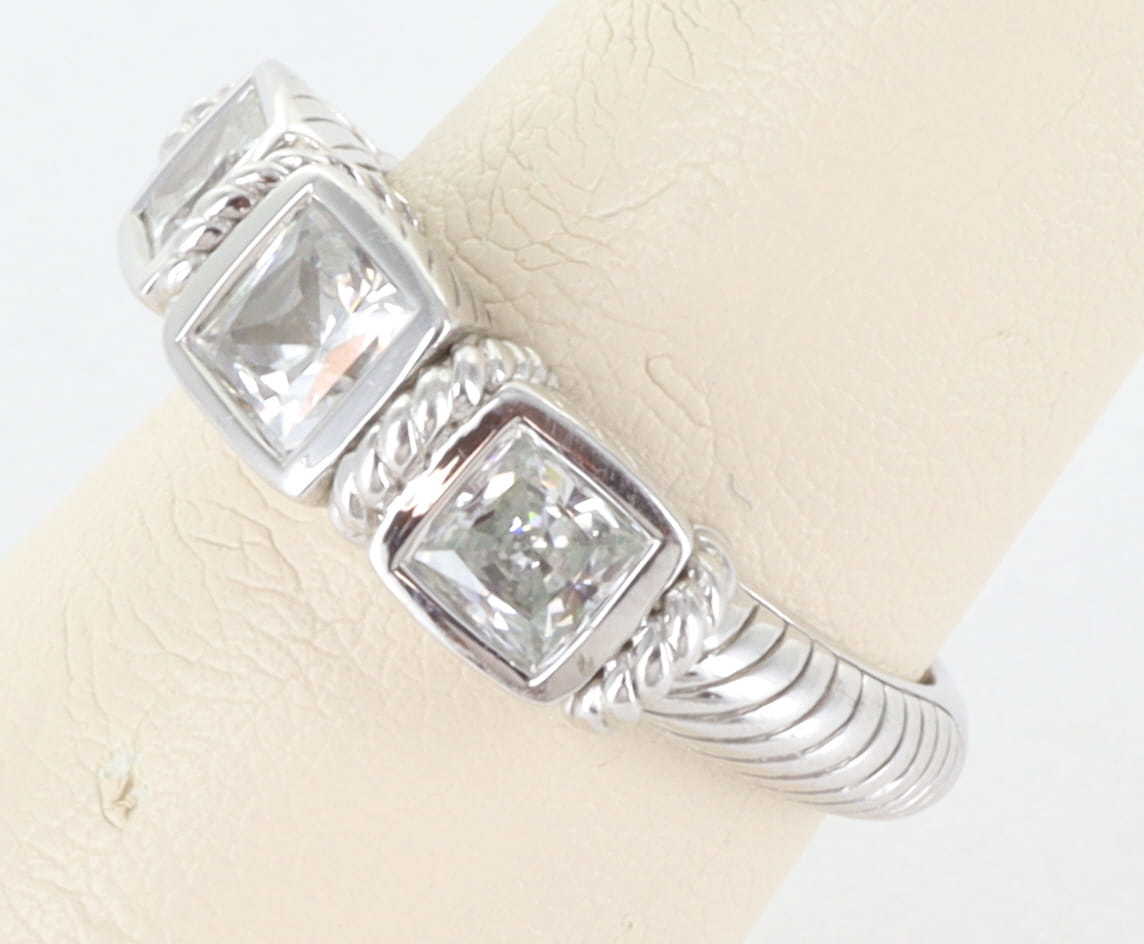 JUDITH RIPKA STERLING SILVER 925 CZ DIAMONIQUE 3 STONE COCKTAIL RING, SIZE 8