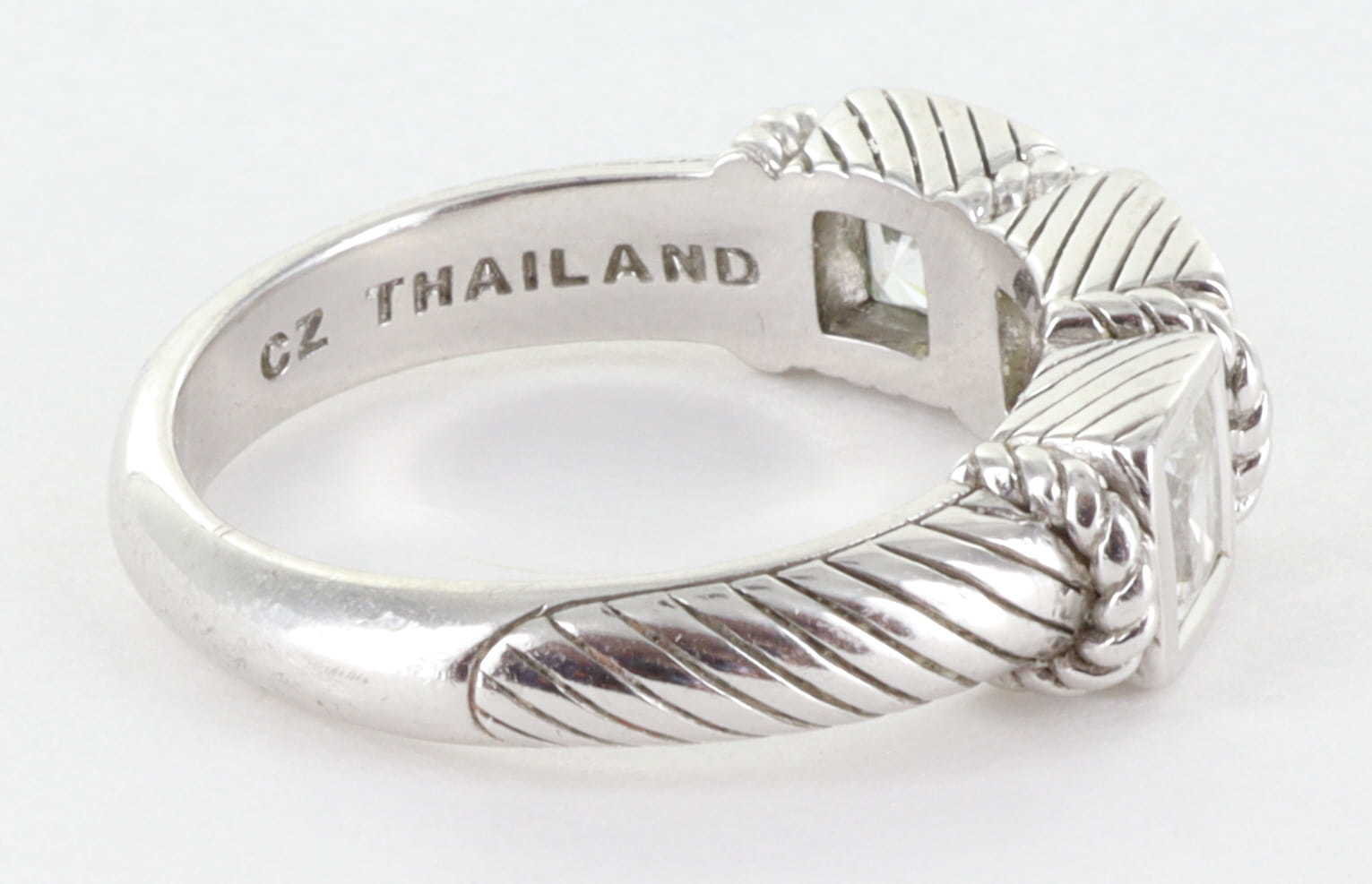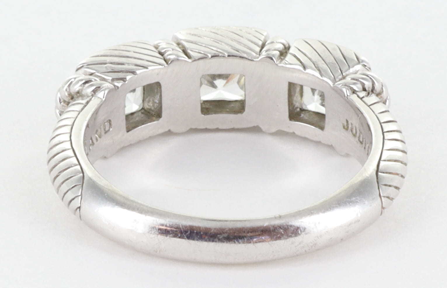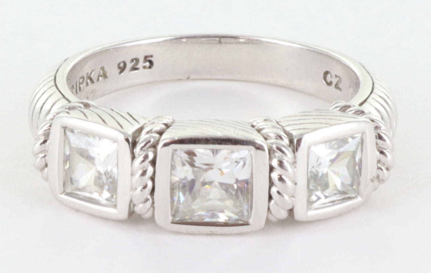 JUDITH RIPKA STERLING SILVER 925 CZ DIAMONIQUE 3 STONE COCKTAIL RING, SIZE 8