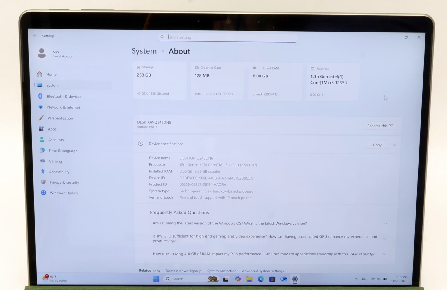 - Processor: 12th Gen Intell Core i5-1235U @ 2.50GHz