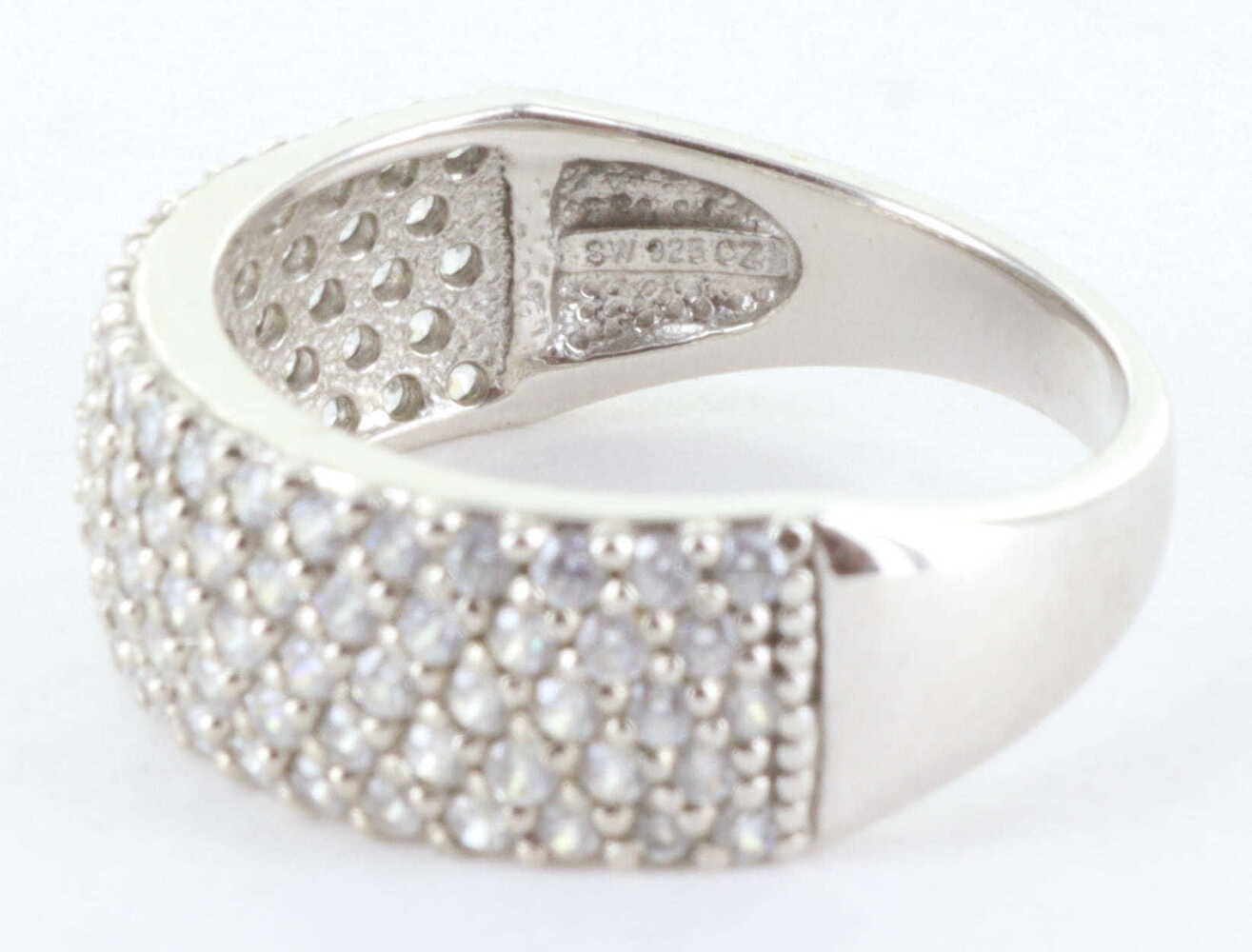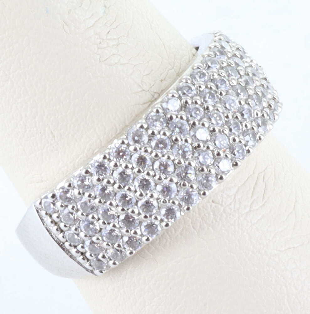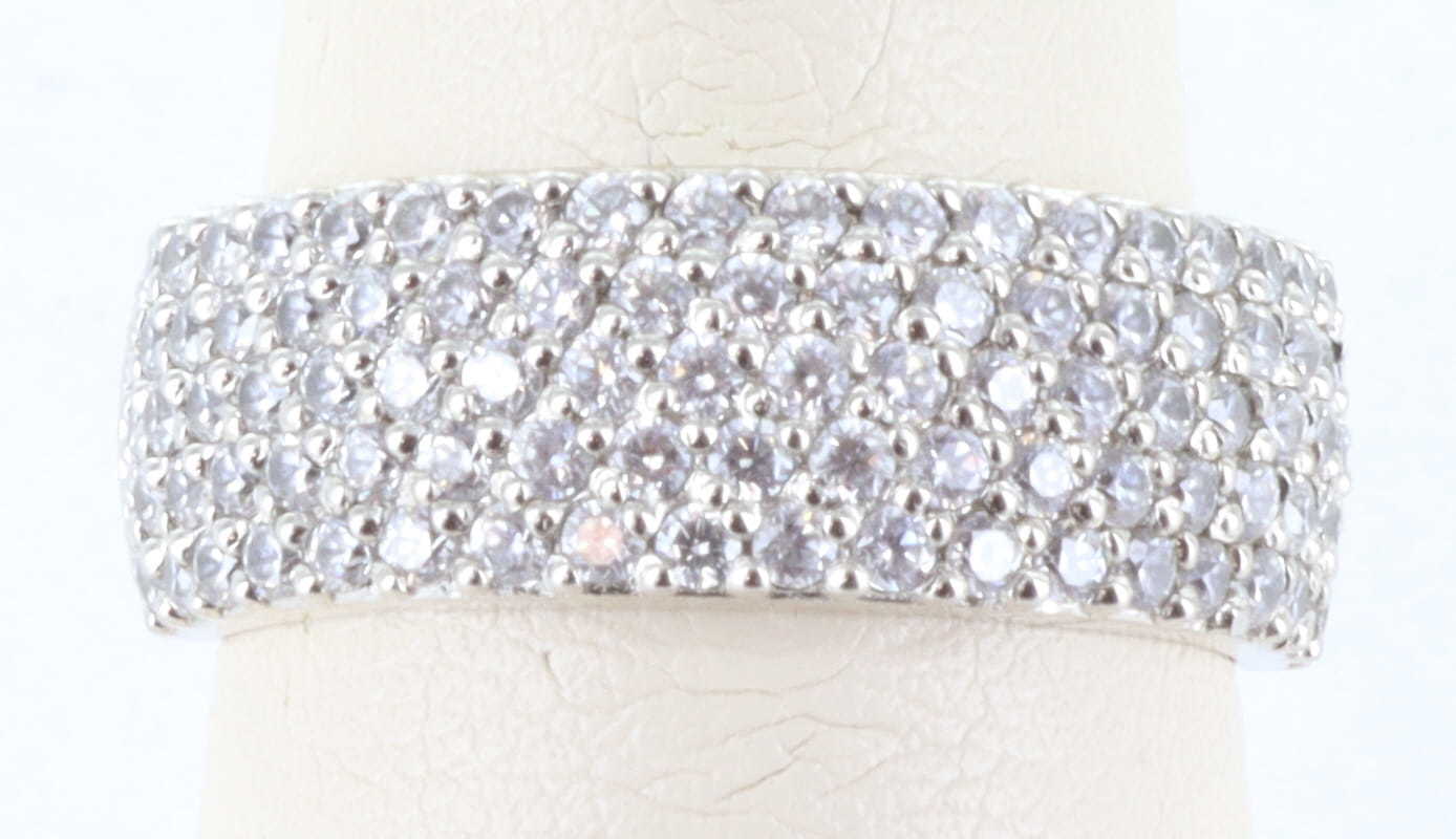 SW STERLING SILVER 925 CZ DIAMONIQUE WIDE BAND STATEMENT COCKTAIL RING, SIZE 8