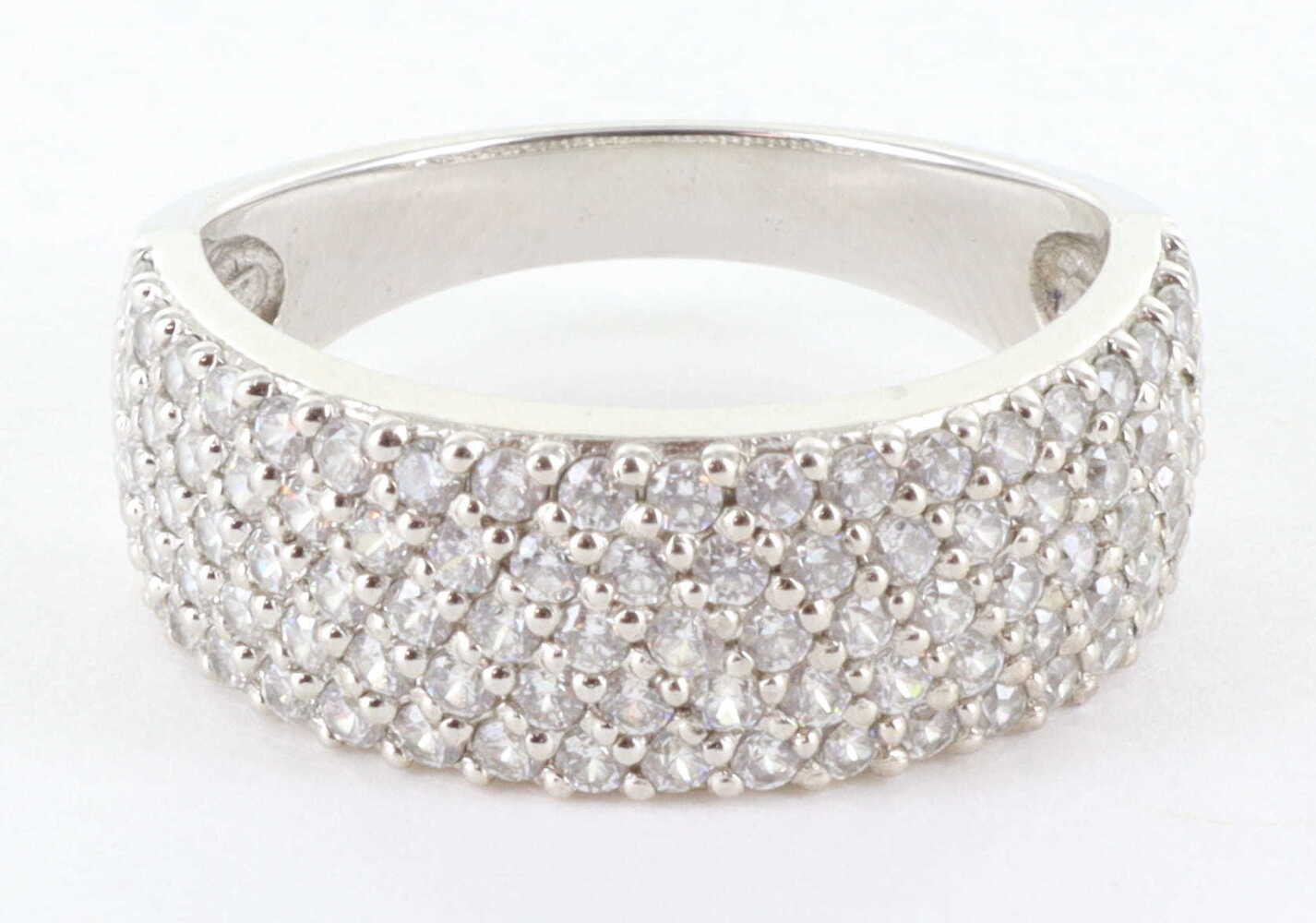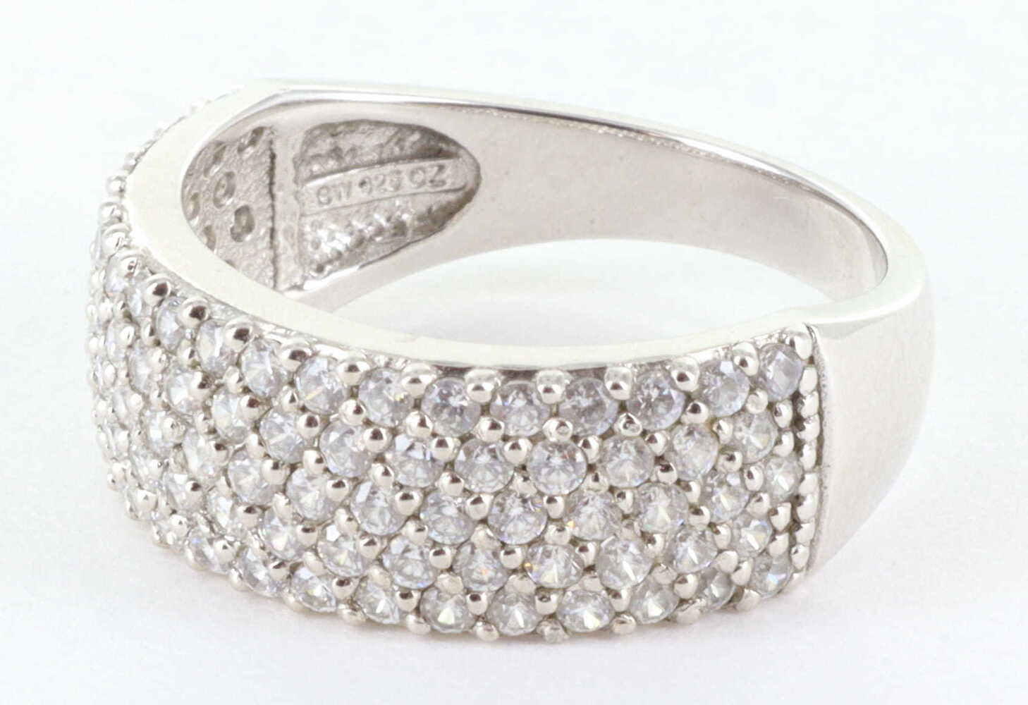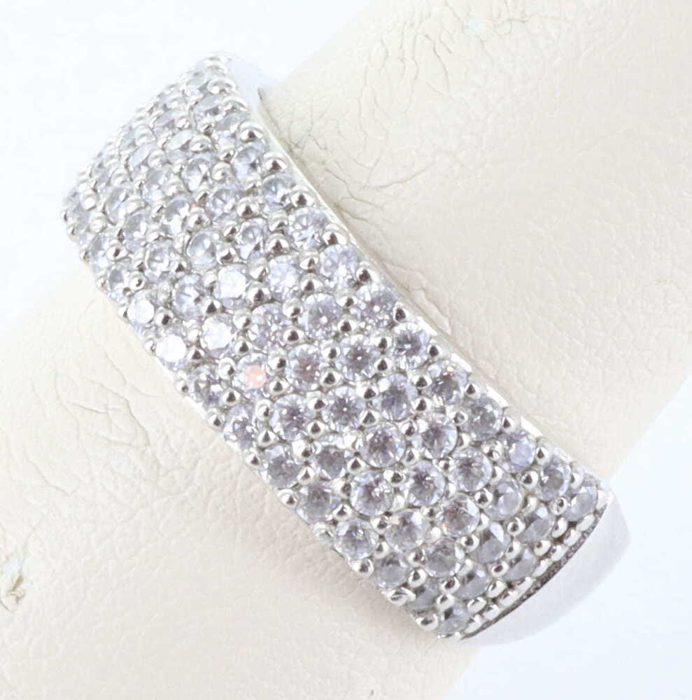 SW STERLING SILVER 925 CZ DIAMONIQUE WIDE BAND STATEMENT COCKTAIL RING, SIZE 8