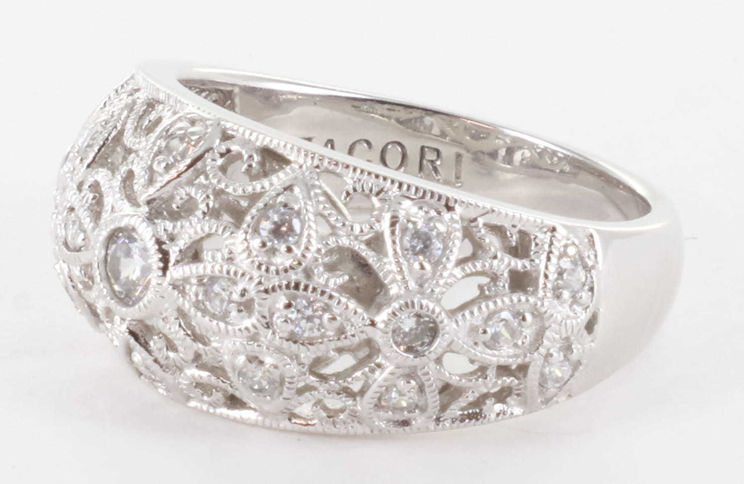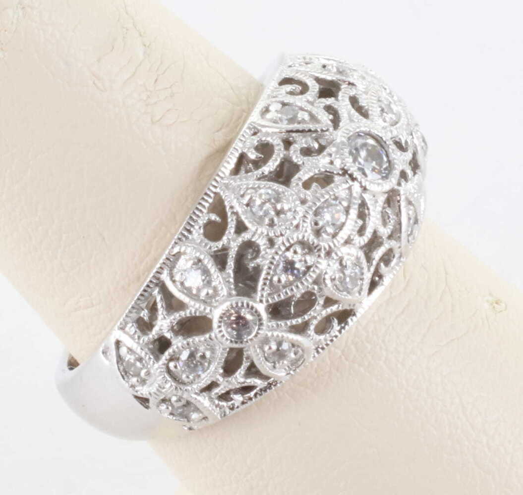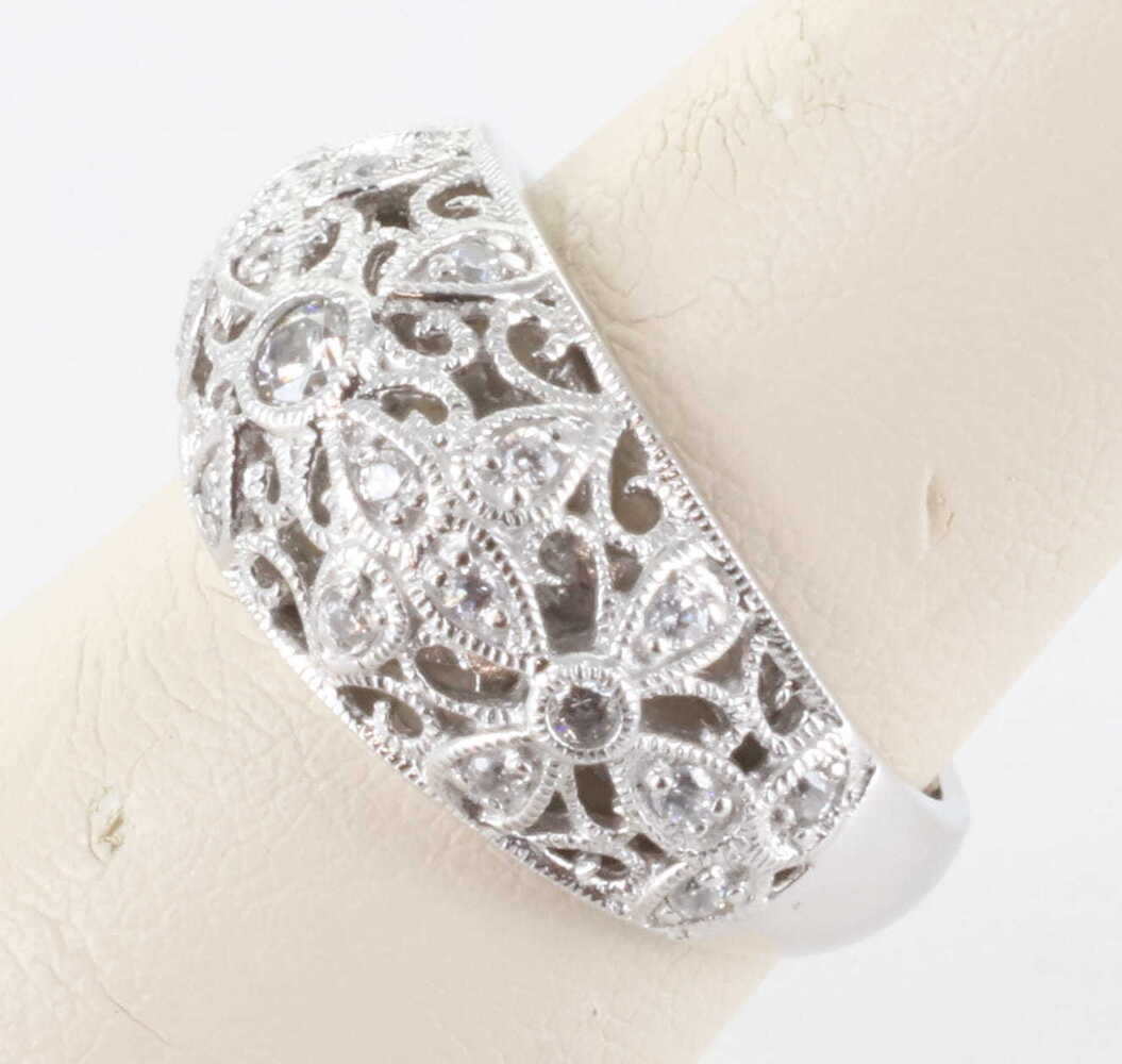 TACORI STERLING SILVER 925 CZ DIAMONIQUE VINTAGE FILIGREE ART DECO RING, SIZE 8