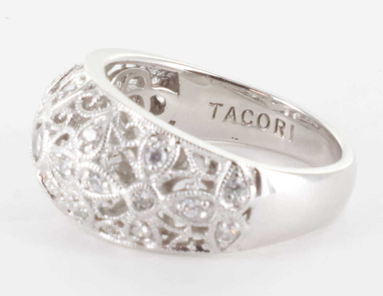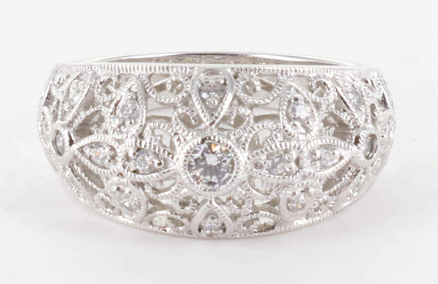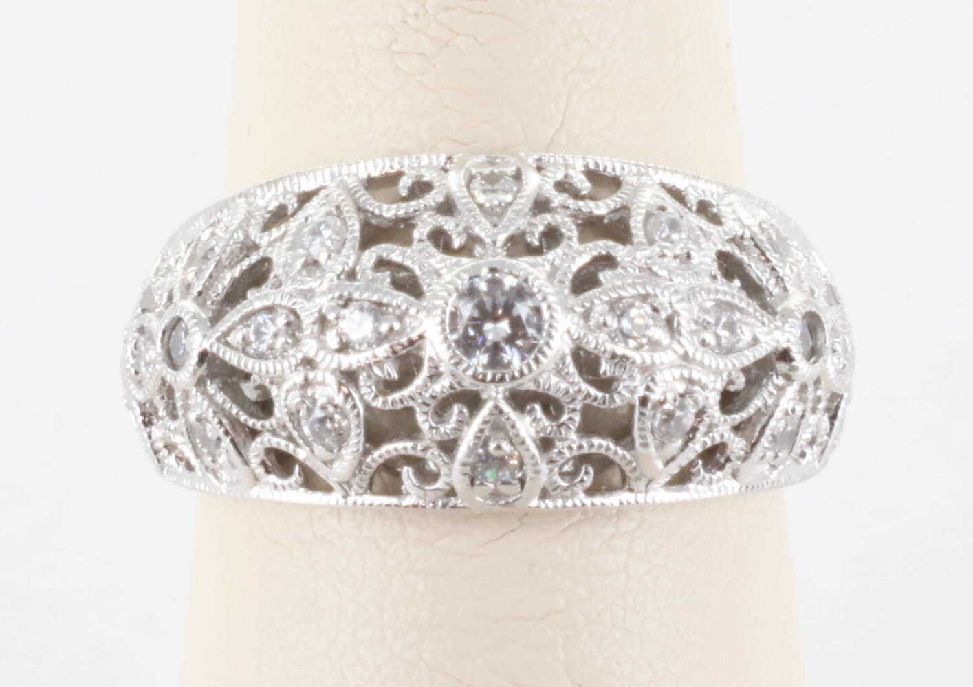TACORI STERLING SILVER 925 CZ DIAMONIQUE VINTAGE FILIGREE ART DECO RING, SIZE 8